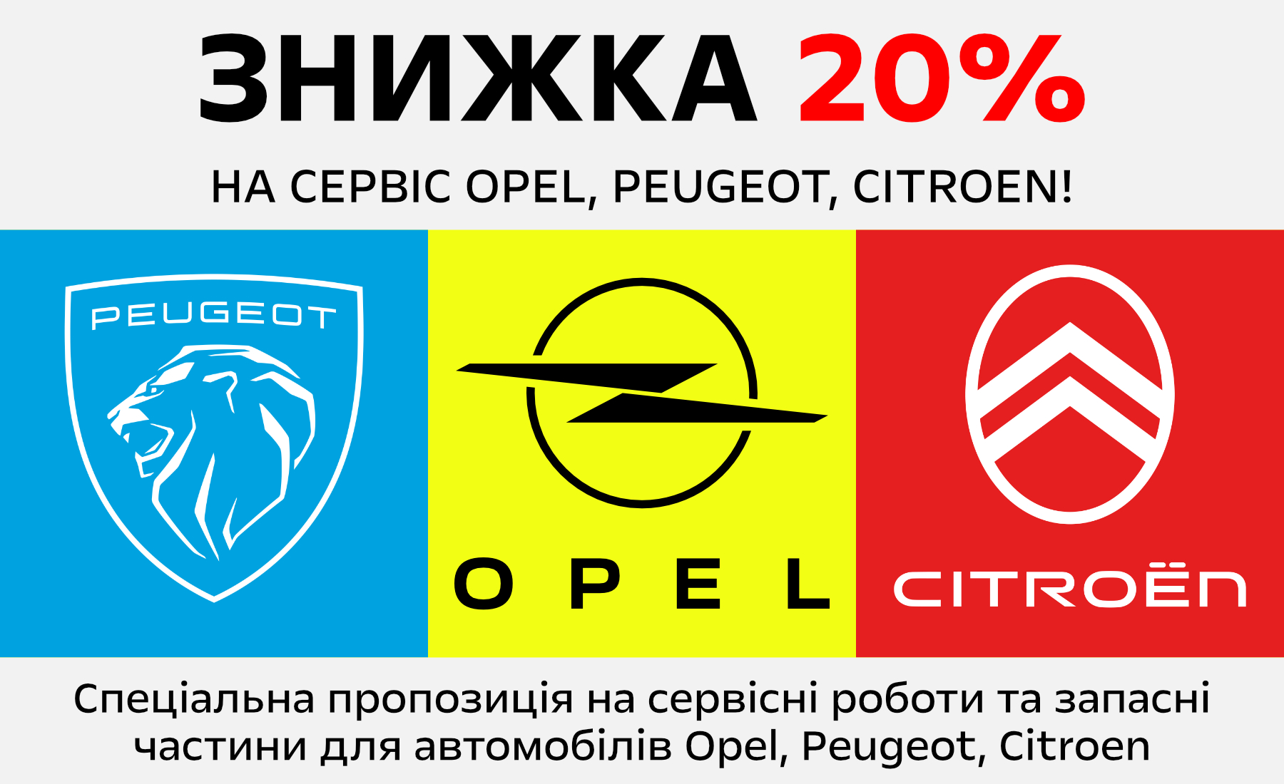 Спеціальна пропозиція на сервісні роботи та запасні частини для автомобілів Opel, Peugeot, Citroen
